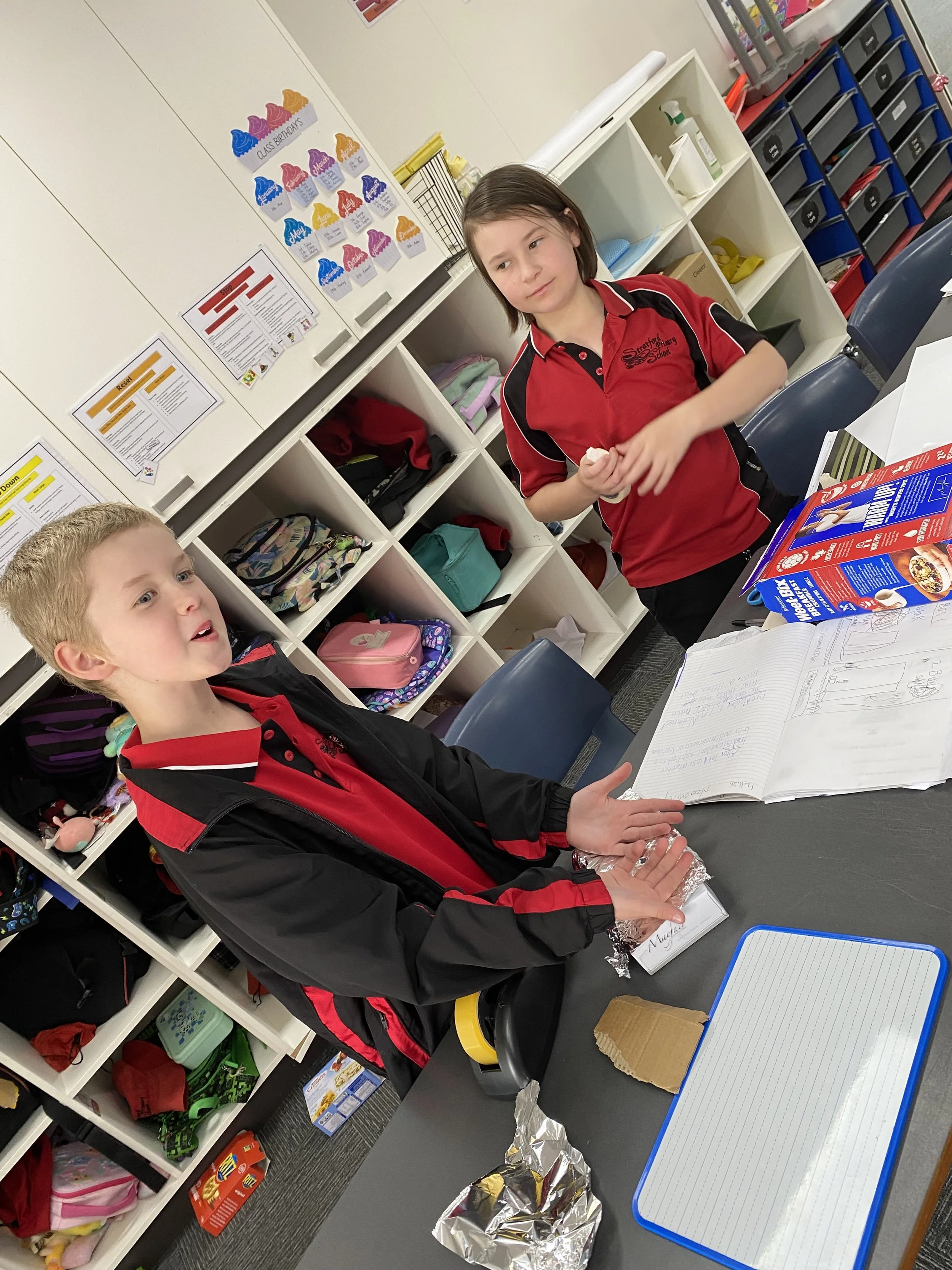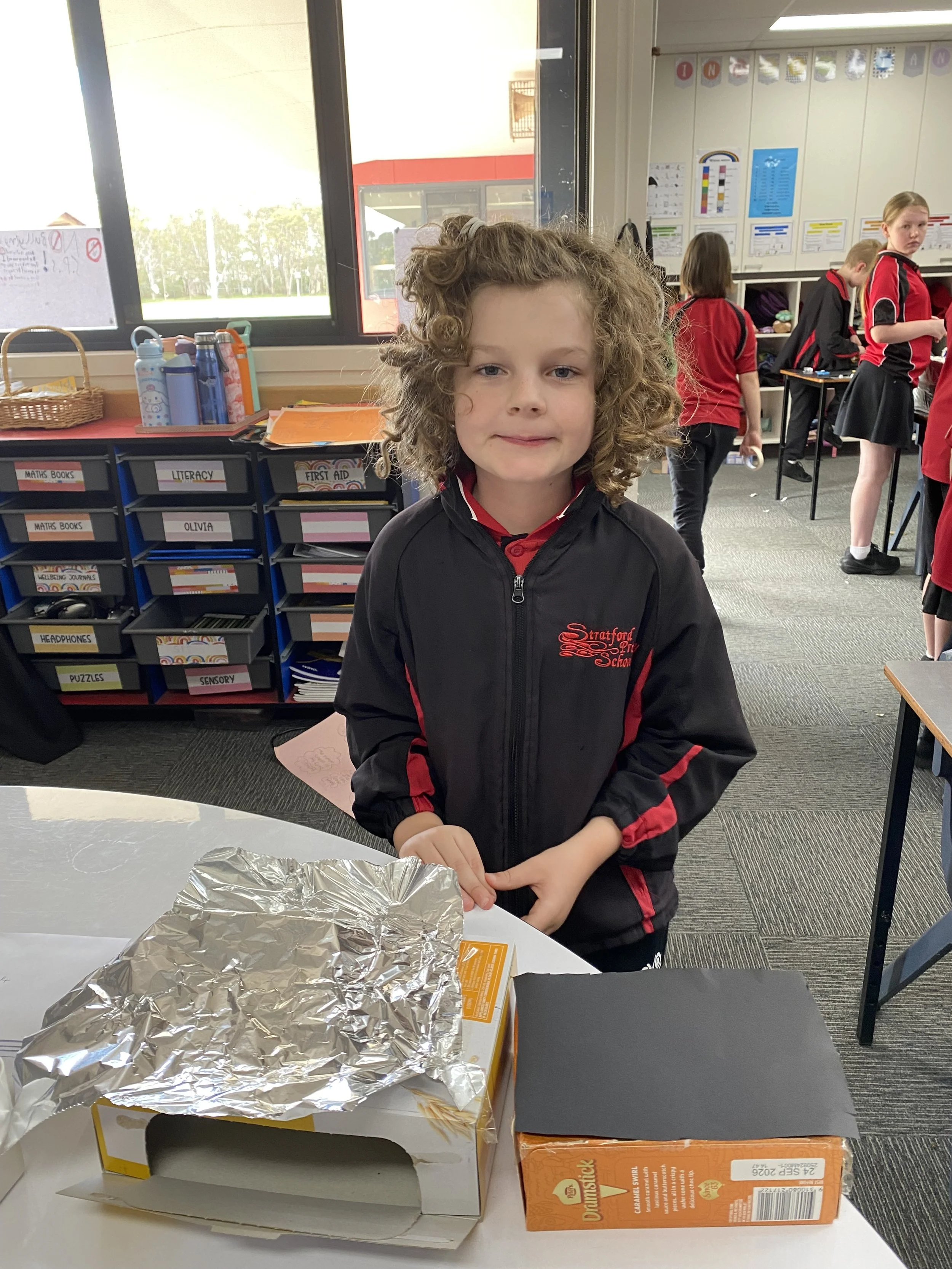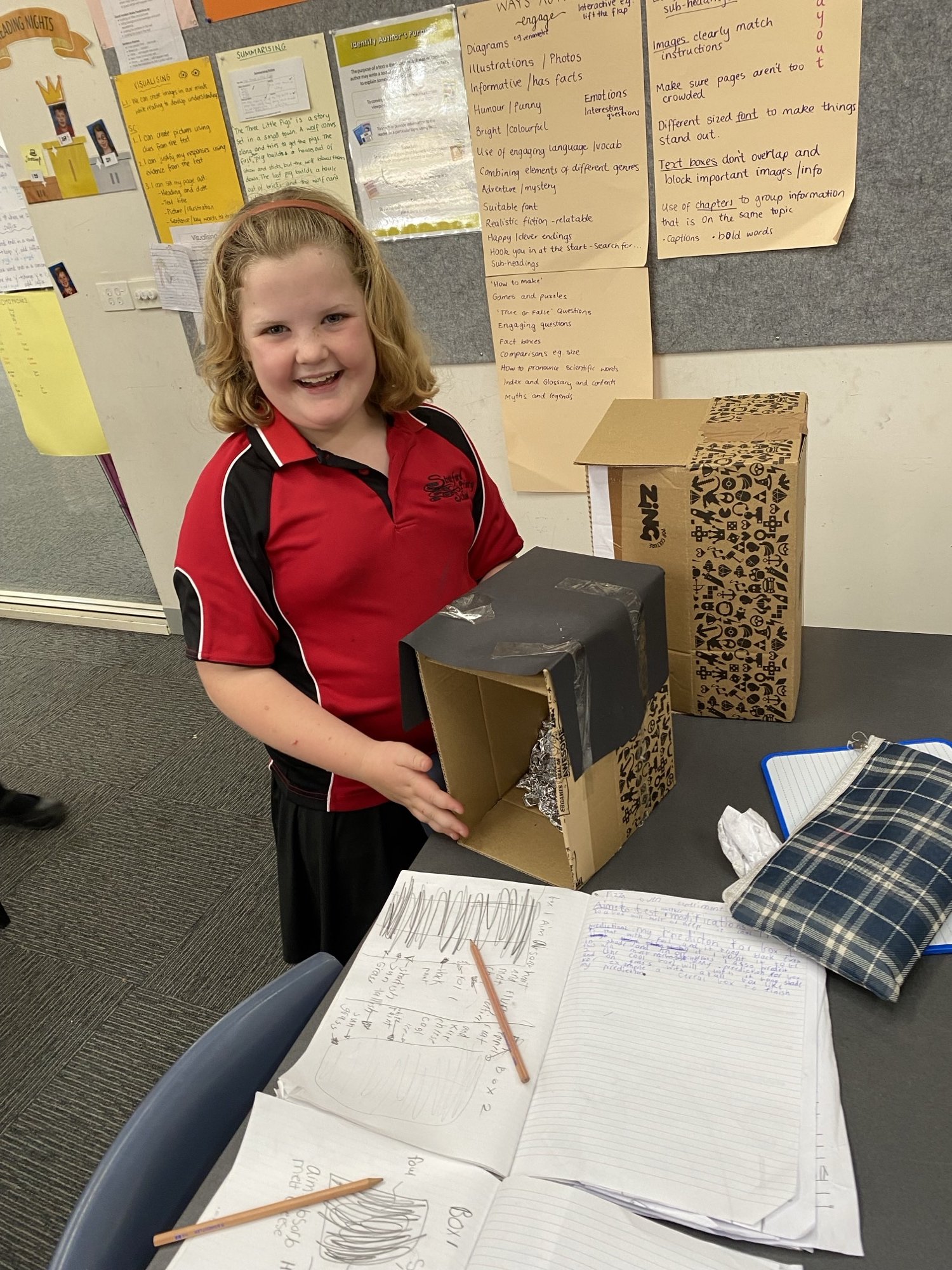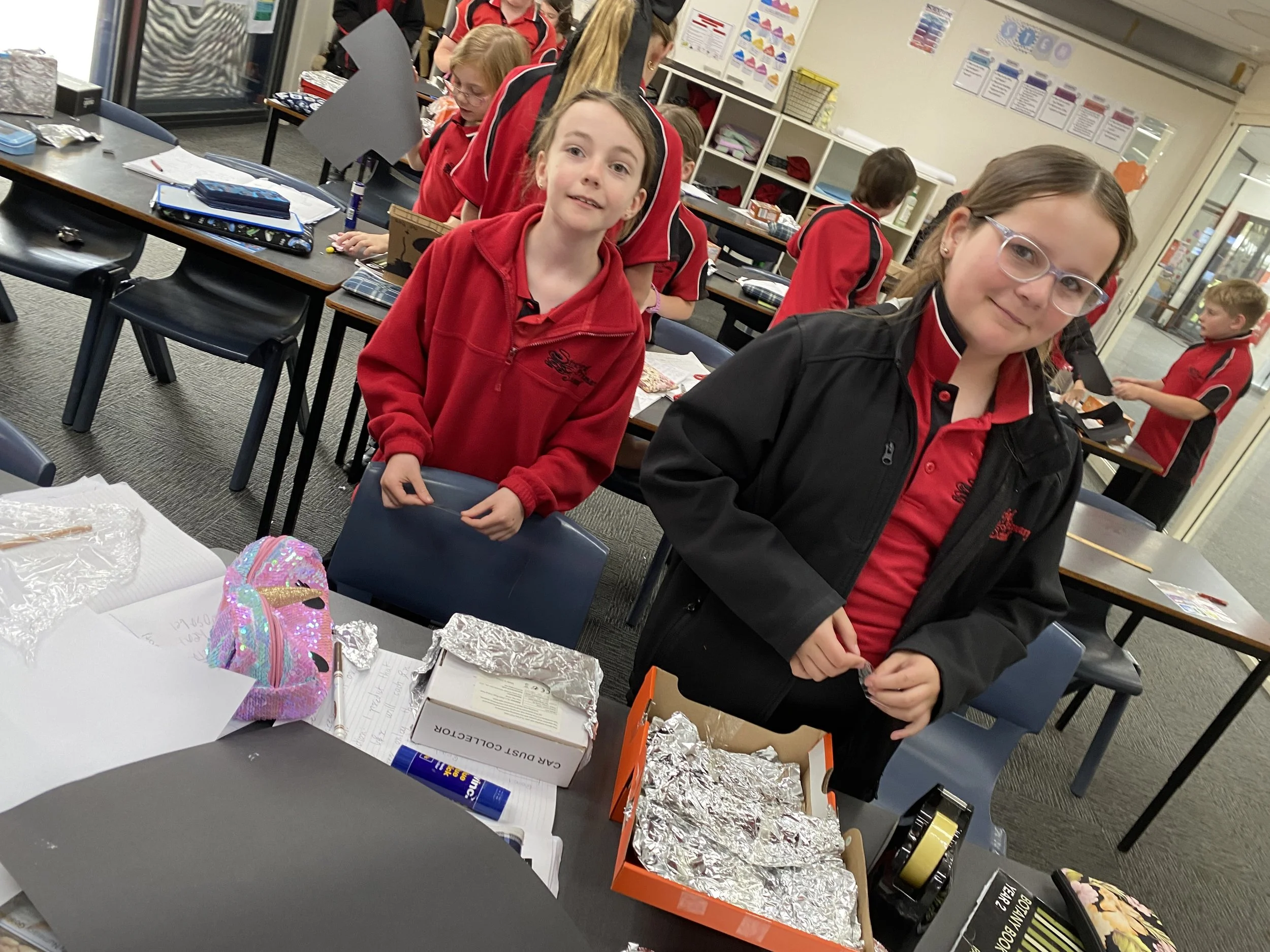 Grade 3/4 students have been busily designing and creating their pizza ovens for our experiment that we will conduct next week. Students have hypothesised what might happen to a slice of cheese when left in the sun for one hour, creating boxes that apply knowledge about heat radiation and conduction and use of insulators.