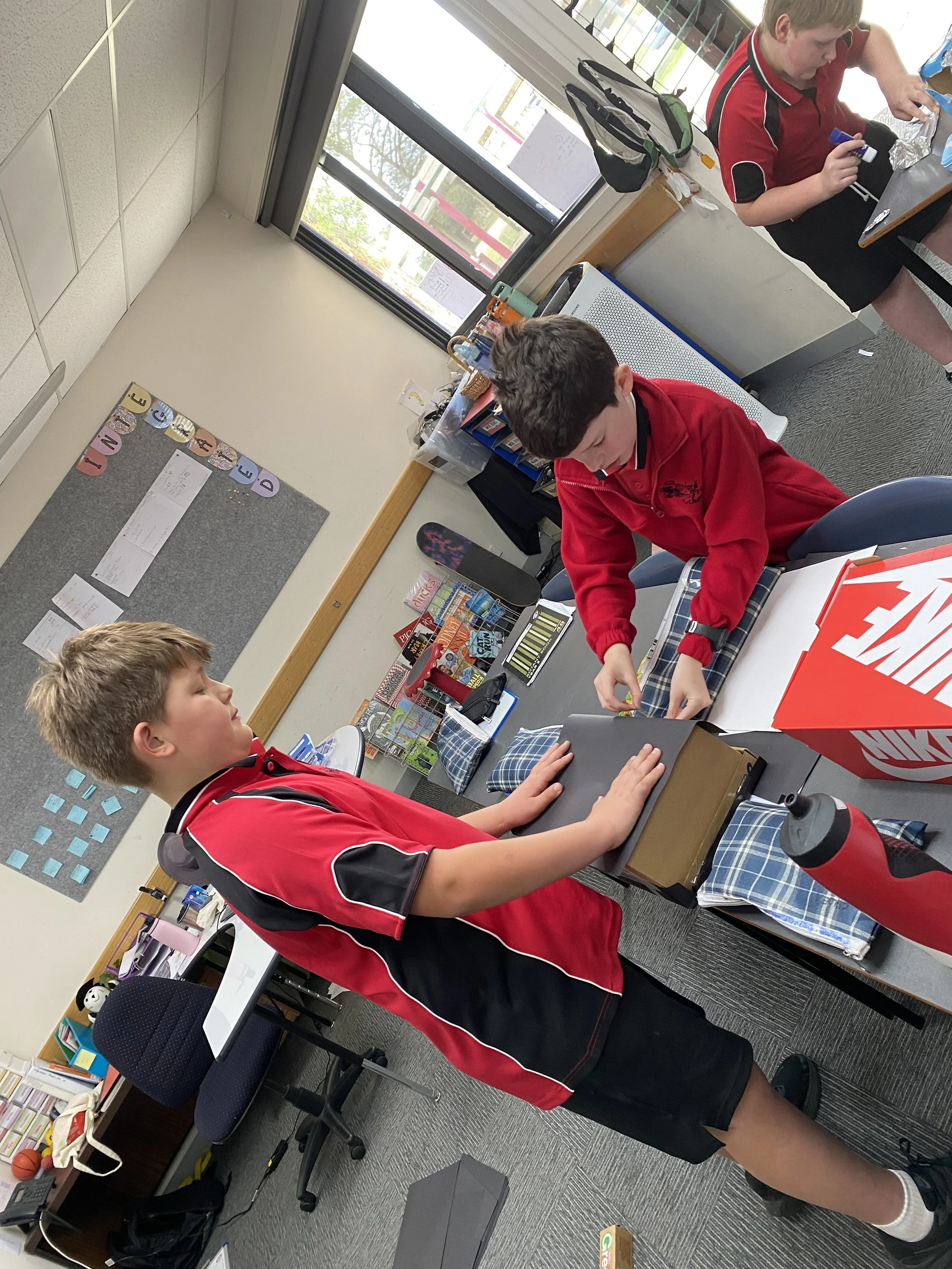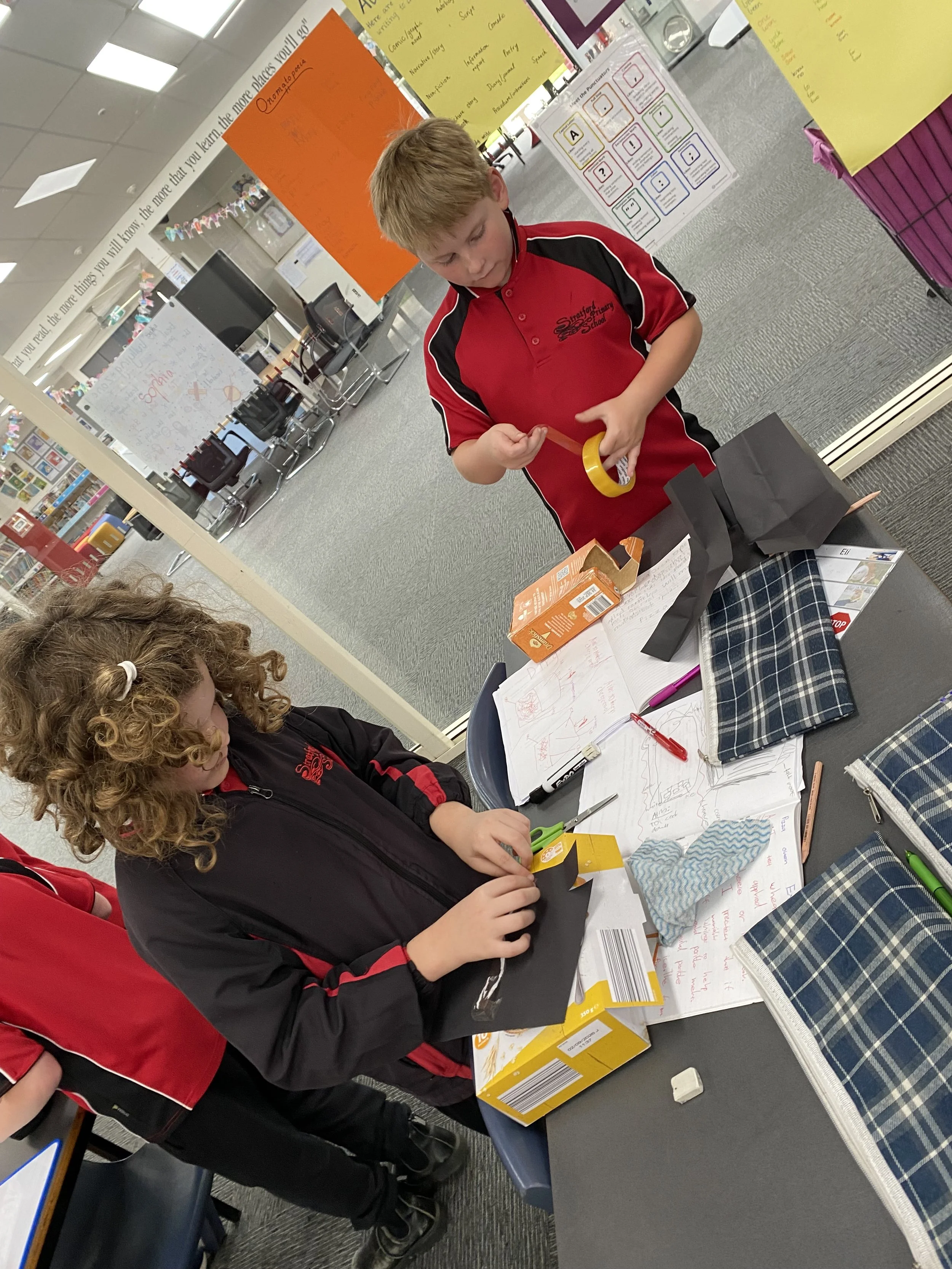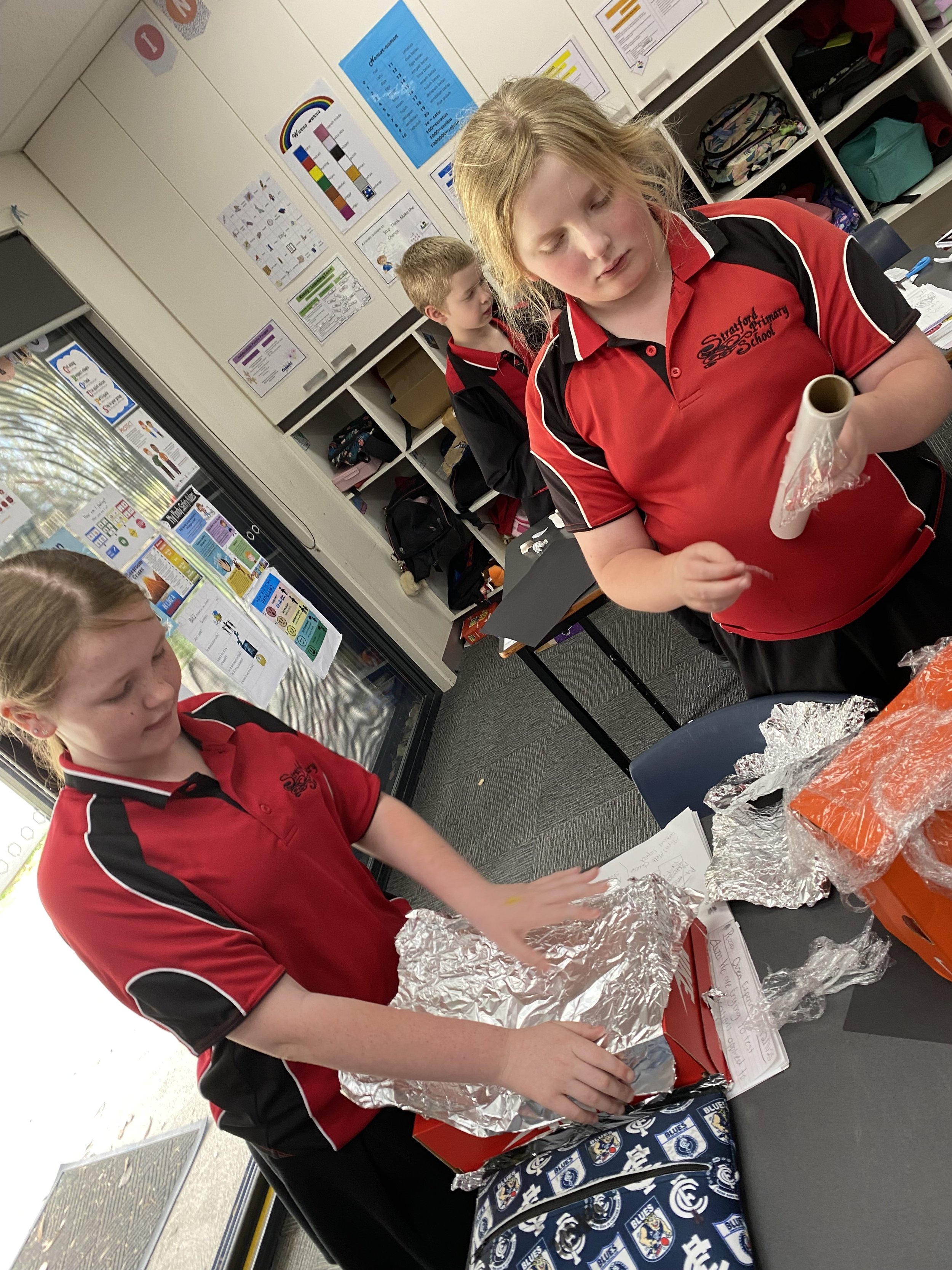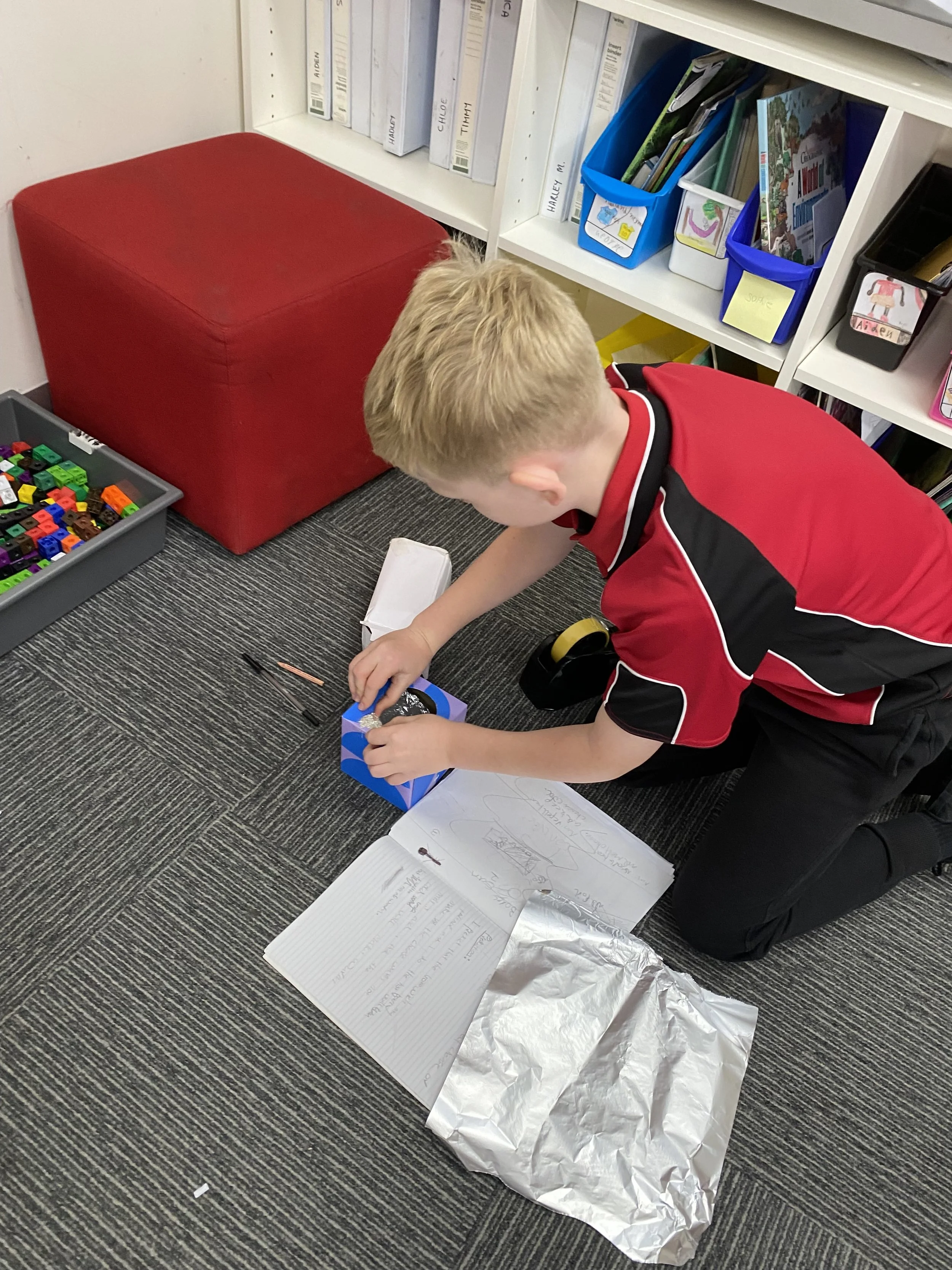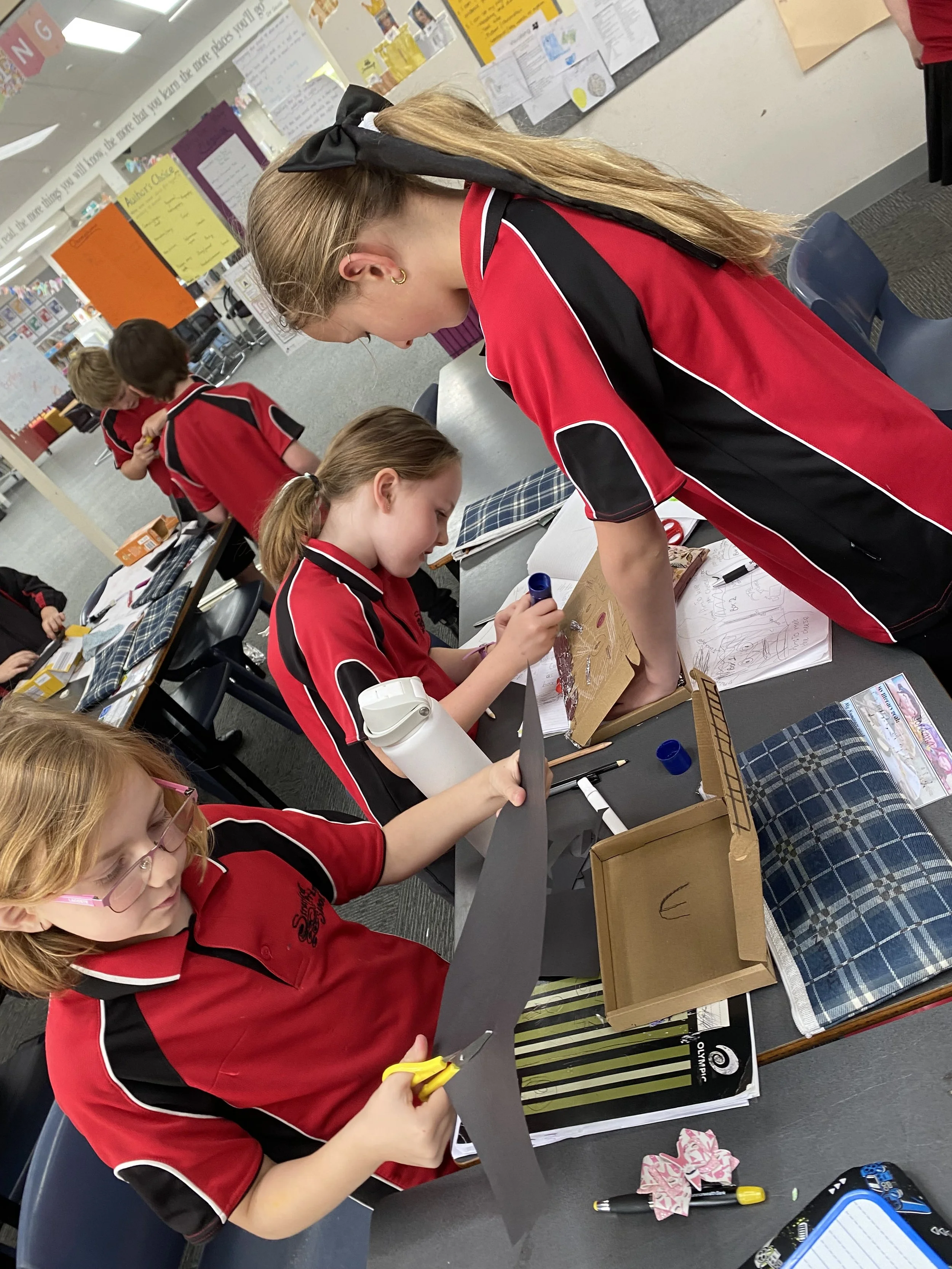 Grade 3/4 students have been busily designing and creating their pizza ovens for our experiment that we will conduct next week. Students have hypothesised what might happen to a slice of cheese when left in the sun for one hour, creating boxes that apply knowledge about heat radiation and conduction and use of insulators.