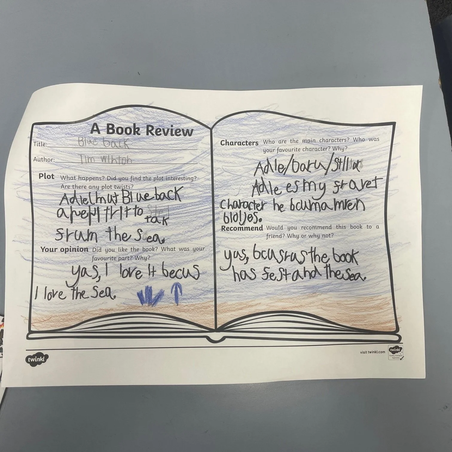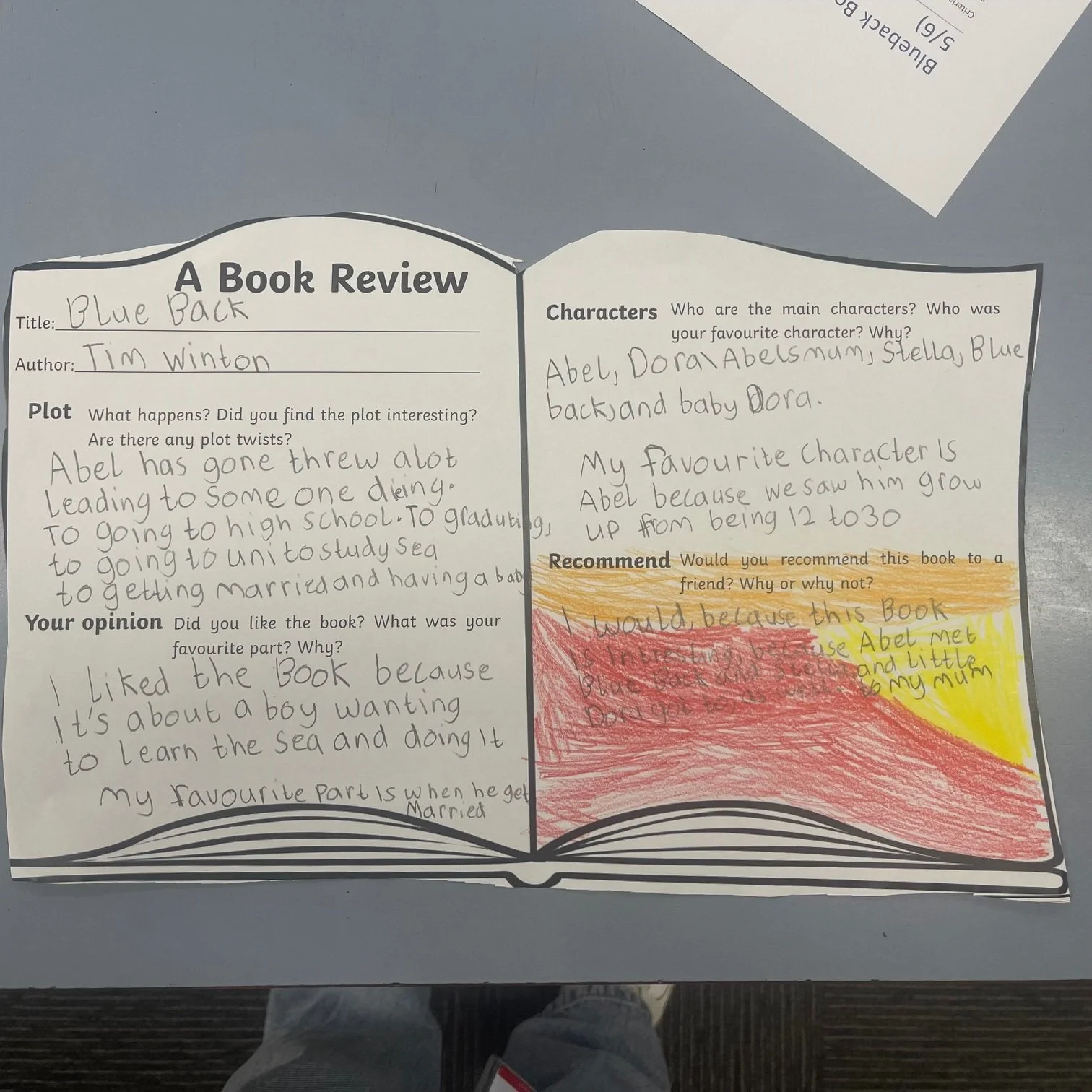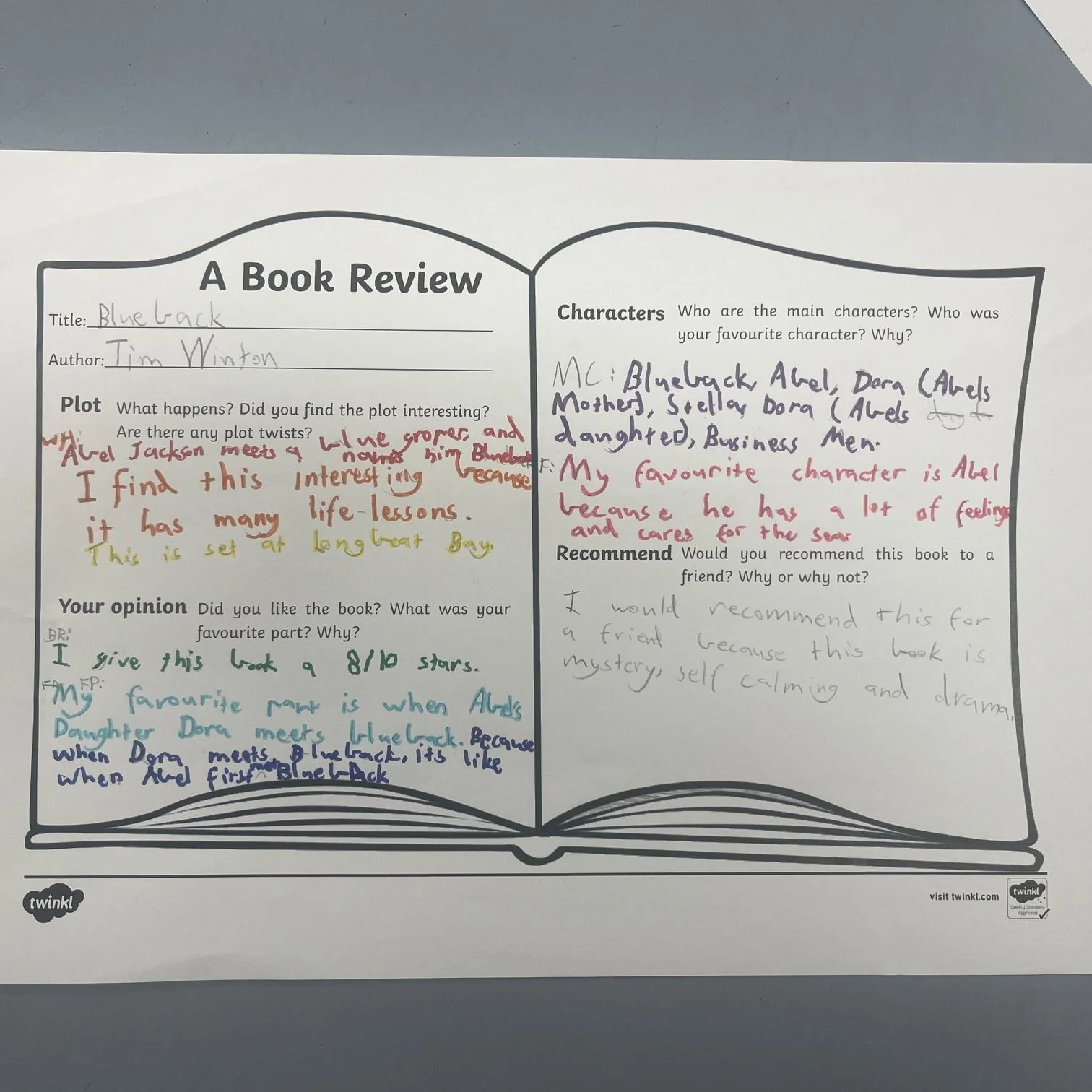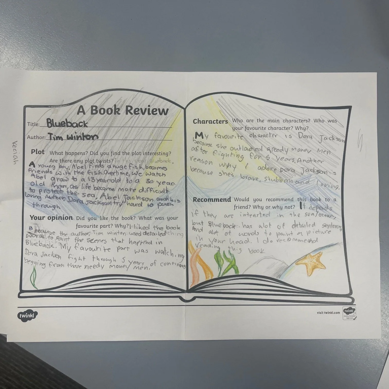 In Grade 5/6, we have just finished reading our Text Study book ‘Blueback’ by Tim Winton.