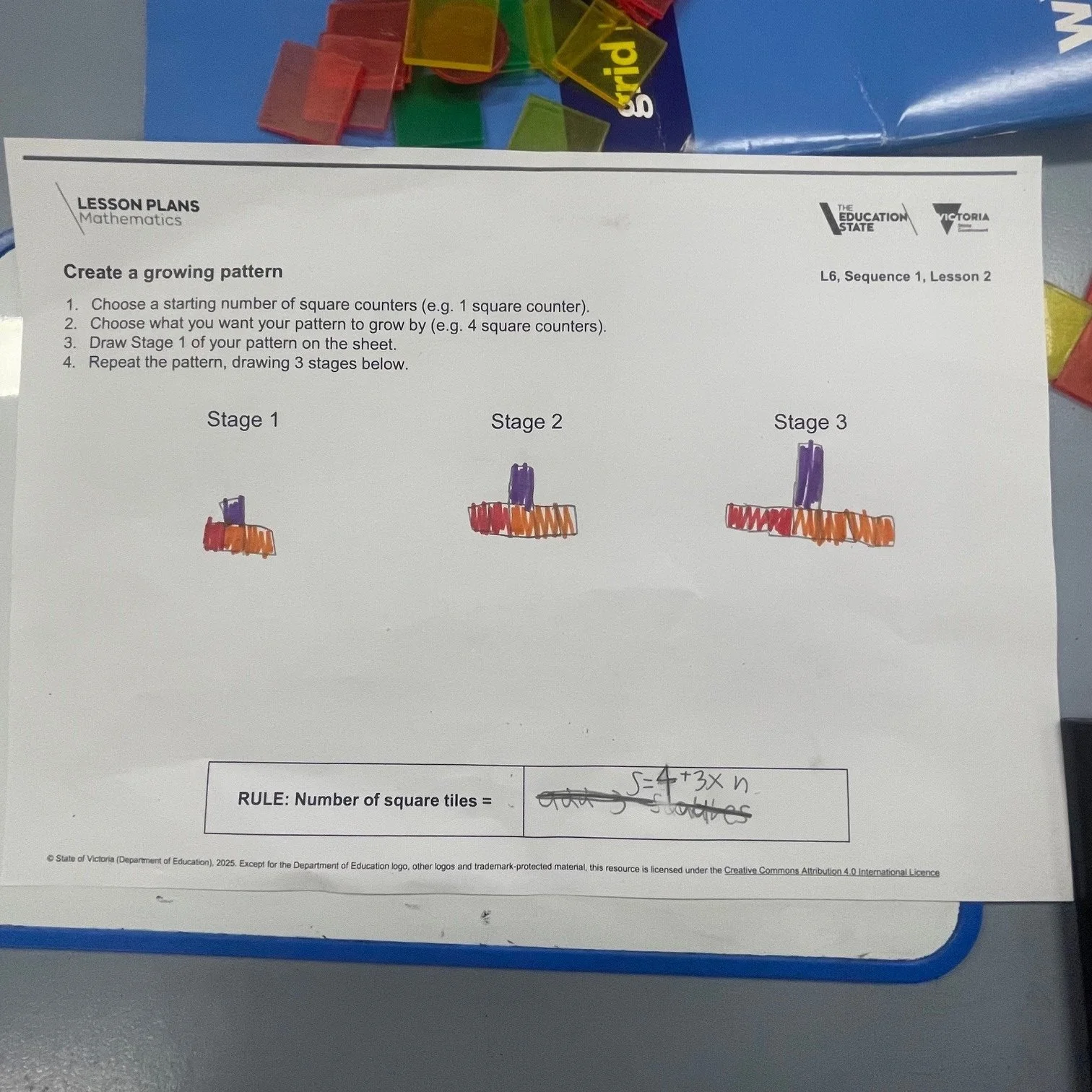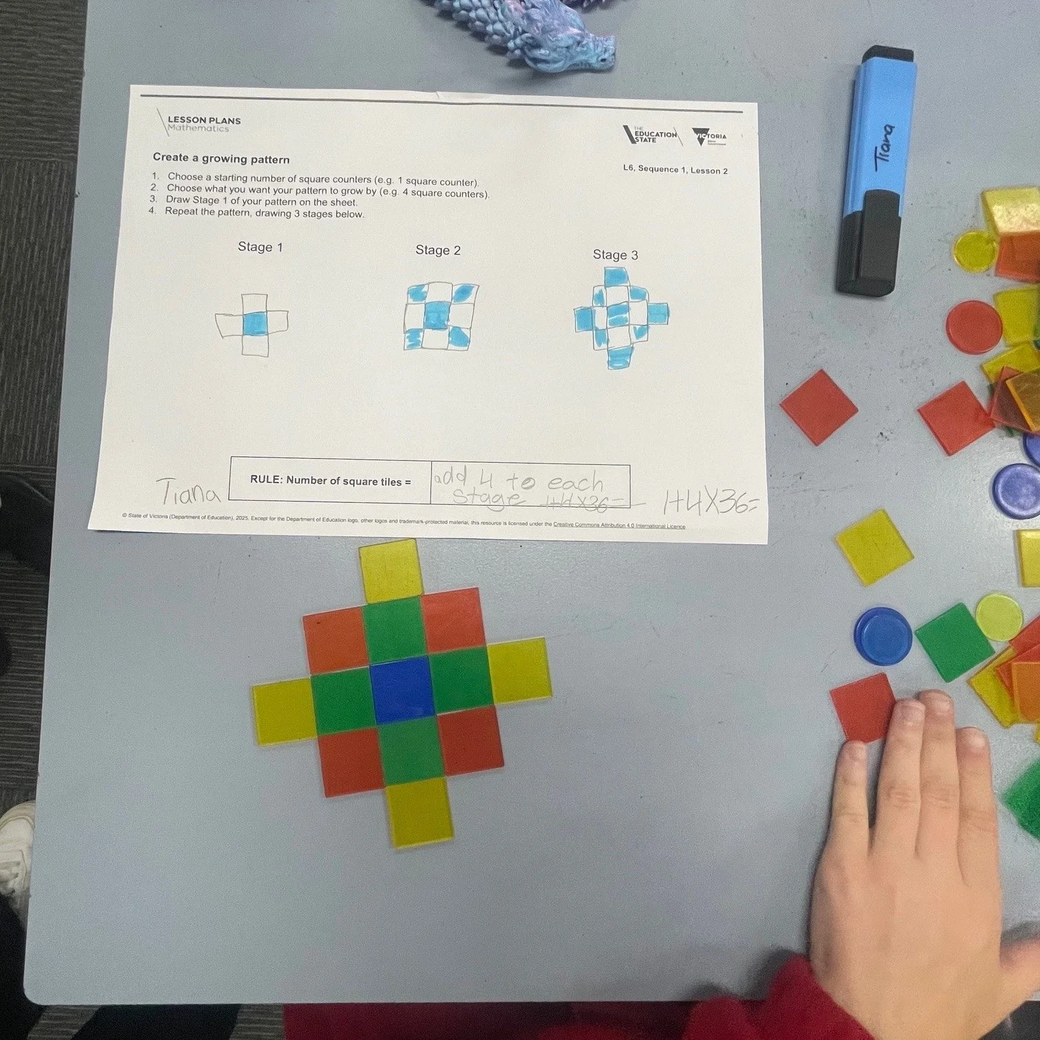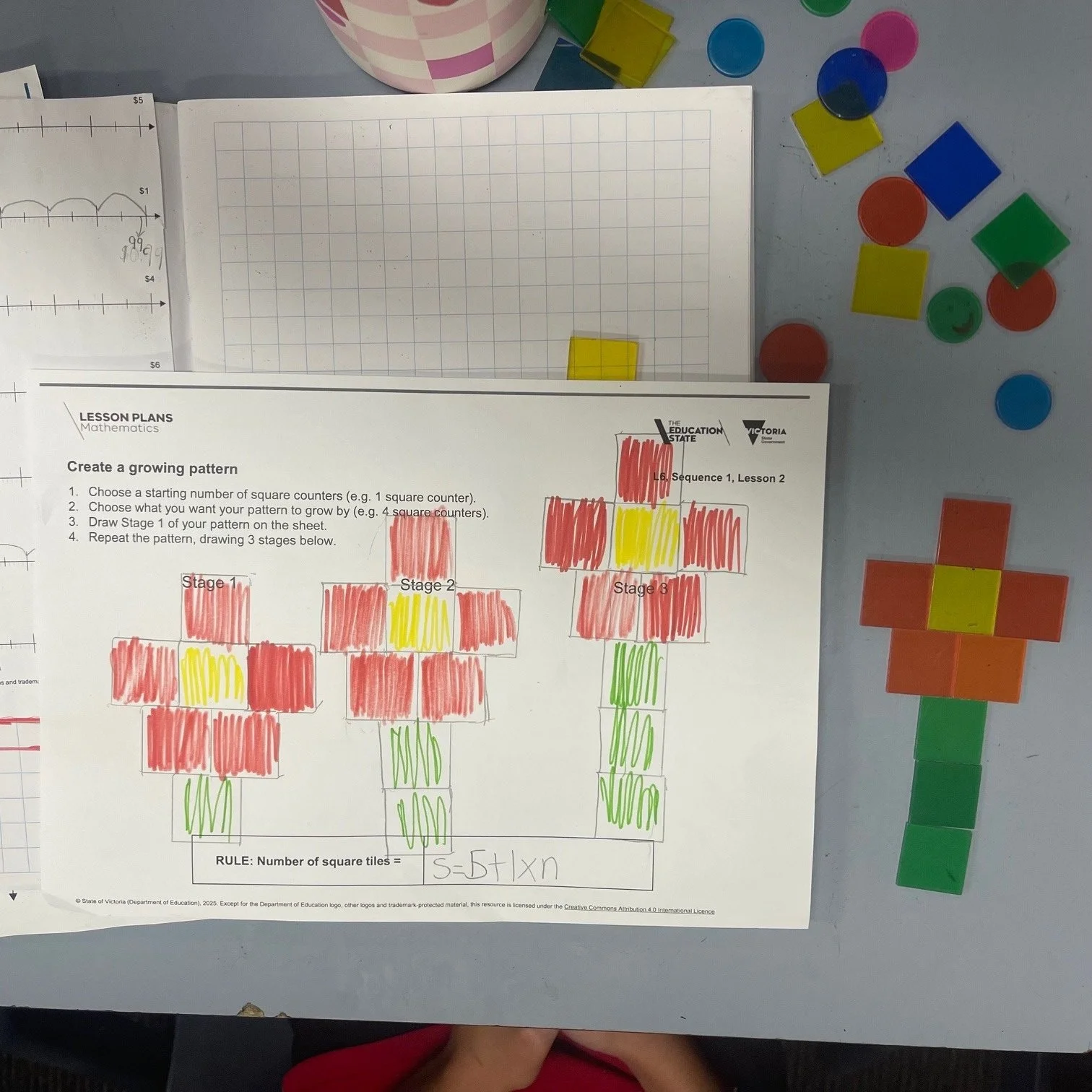 In maths this week, we have been exploring how to create and extend geometric patterns. Through these patterns, we are beginning to understand basic algebra through generalising rules.
