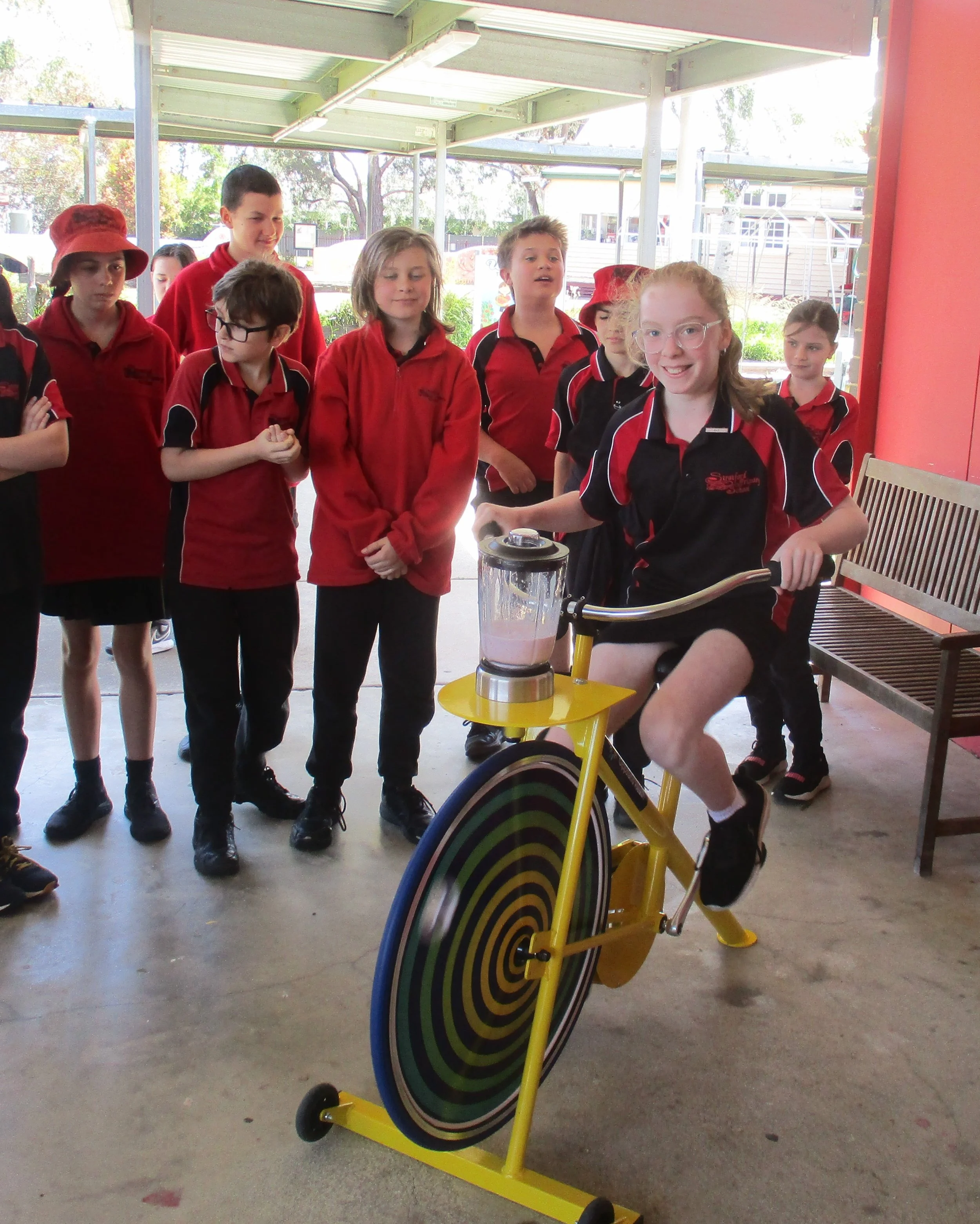 Working out for a smooth reward. Students finally enjoyed the last part of their prize for healthy lunchboxes by using pedal power to make delicious smoothies. Thanks to Anna and Gail from Central Gippsland Health and to Year 5/6 for helping with the smaller students.