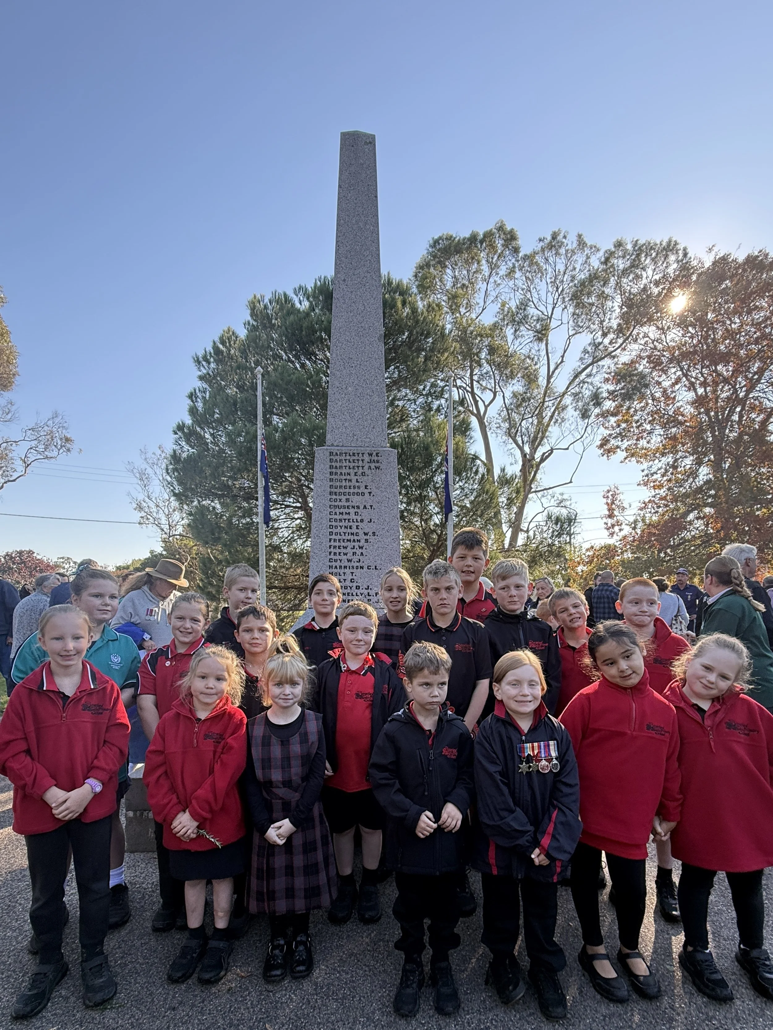 We were very proud of the following students, who represented the school by marching and for the respect they showed throughout the service: Mia, Tyler, Olivia, Rory, Auden, Zephyr, Gracelynn, Maggie, Sage, Rylee, Georgie, Jaxon, Kaden, Cooper, Freddie, Jensen, George, Jack, Oddie, Hadley, Harley M, Abby and Tom. Well done also to Indie, Charlie, and other family and friends who joined us.